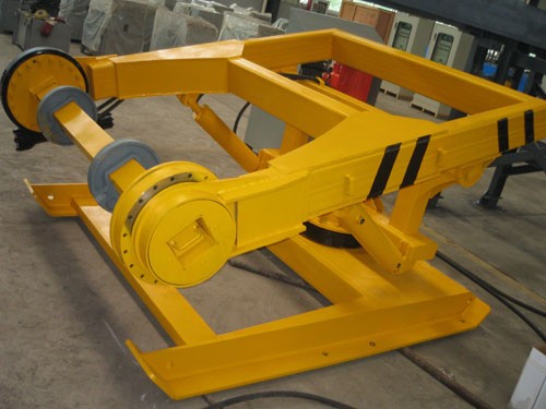 带式输送机液压卷带装置是用于煤矿井下可伸缩带式输送机的标准配套部件,其功能是迅速、快捷的将贮带仓内贮满的输送带缠绕到卷带装置的卷轴上,再通过卷带装置的水平旋转,将成卷输送带移送至机架外,然后用辅助运输工具将输送带运走。该设备的应用可显著的提高工作效率,降低工人的劳动强度。本产品已获得矿用产品安全标志证书。